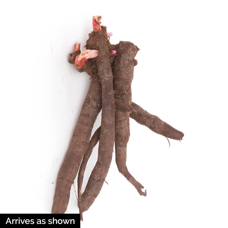 Planting Instructions:Plant with eyes 1-2″ below the soil surface. Firm soil around the roots and water thoroughly. Planting too deep will result in poor flowering.